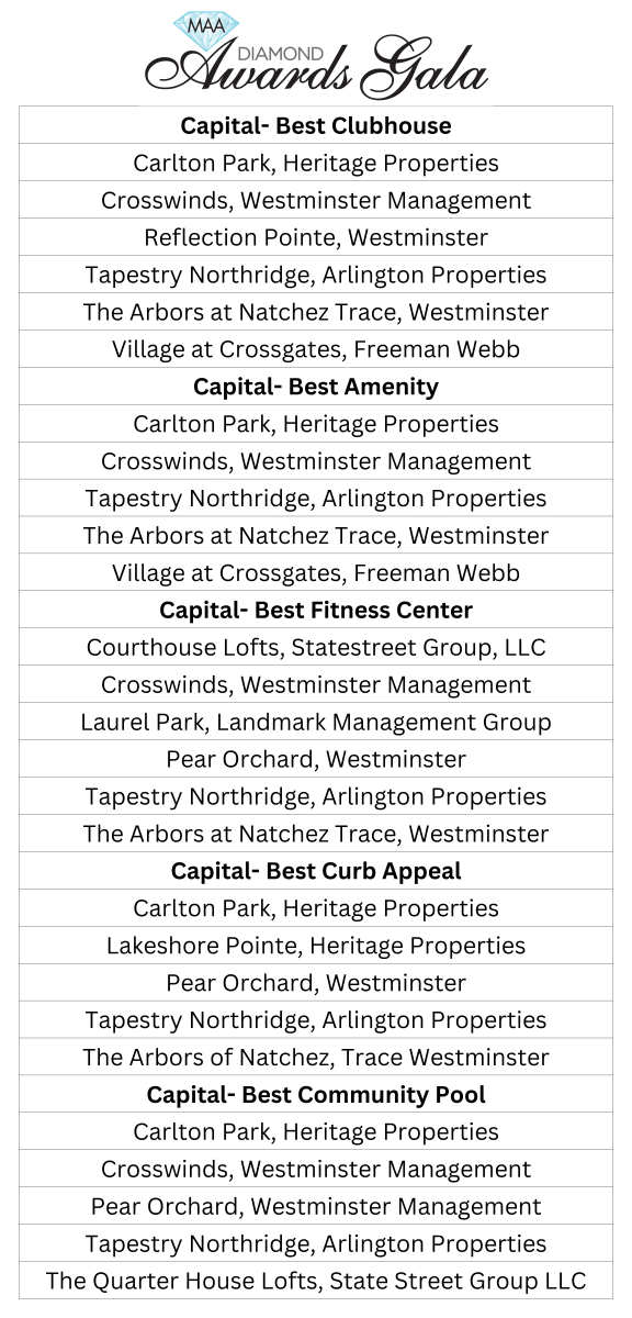 • 2024 MAA Capital Diamond Award Nominees Date postedJanuary 9, 2025Posted